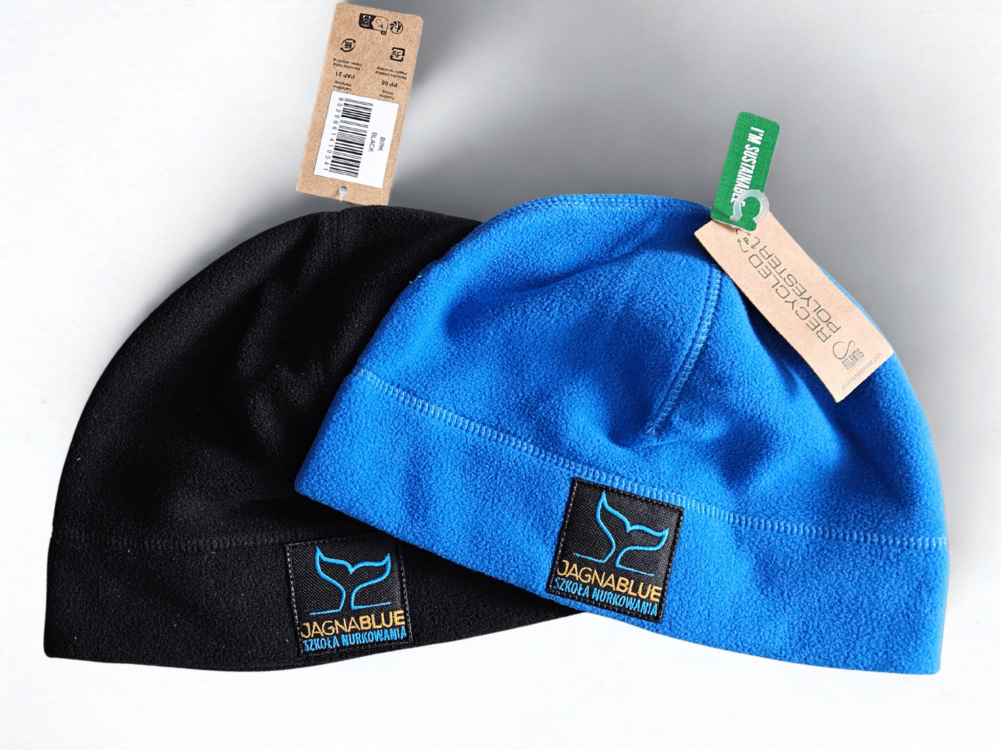 Polarowa czapka JagnaBlue z naszywką.