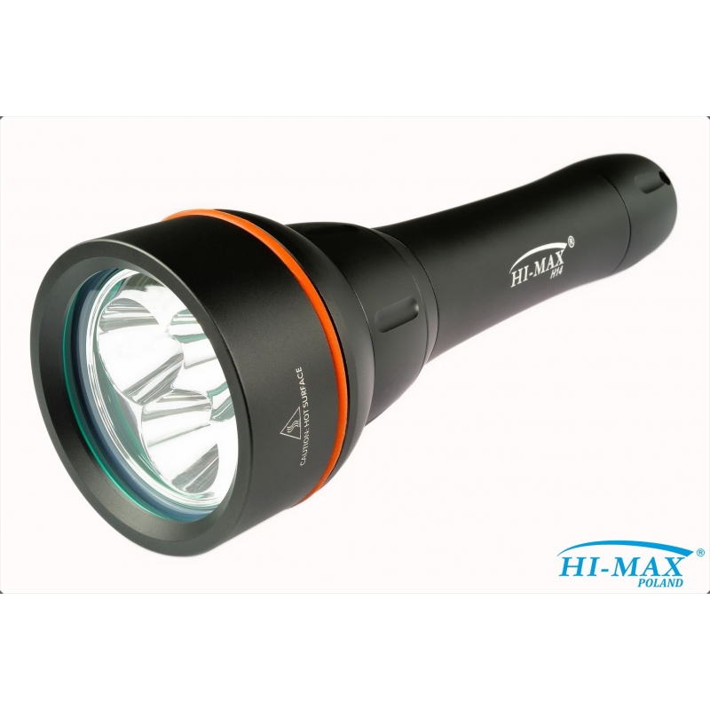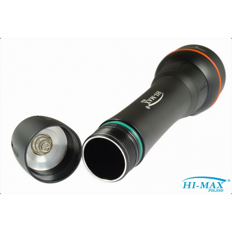 HI_MAX H14 jest latarką główną dysponującą dużą mocą 2500 lm o stałej i nie słabnącej wiązce światła przez około 100 minut, co spokojnie zapewnia obsługę dwóch pełnych nurkowań.