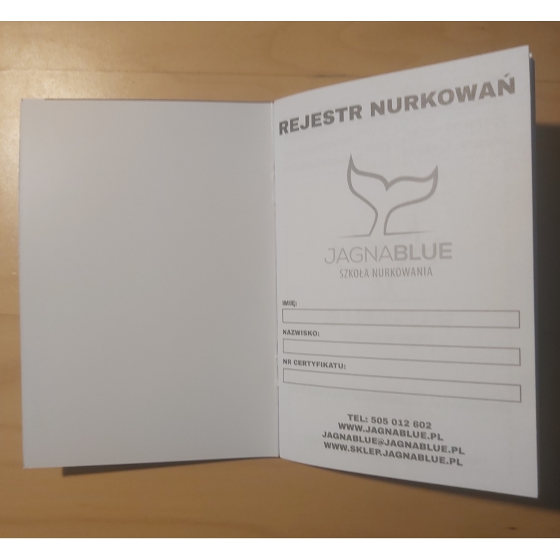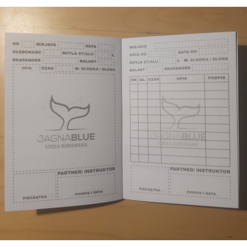 LogBook JagnaBlue. Rejestr do zapisywania nurkowań pojedynczych oraz zbiorczych.